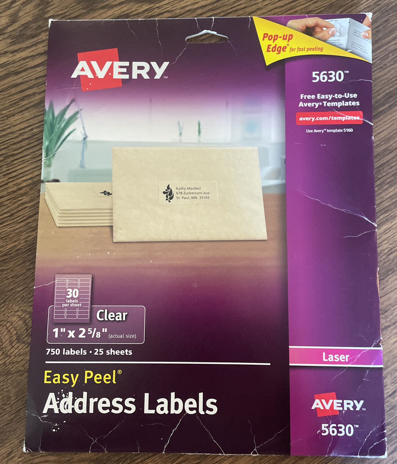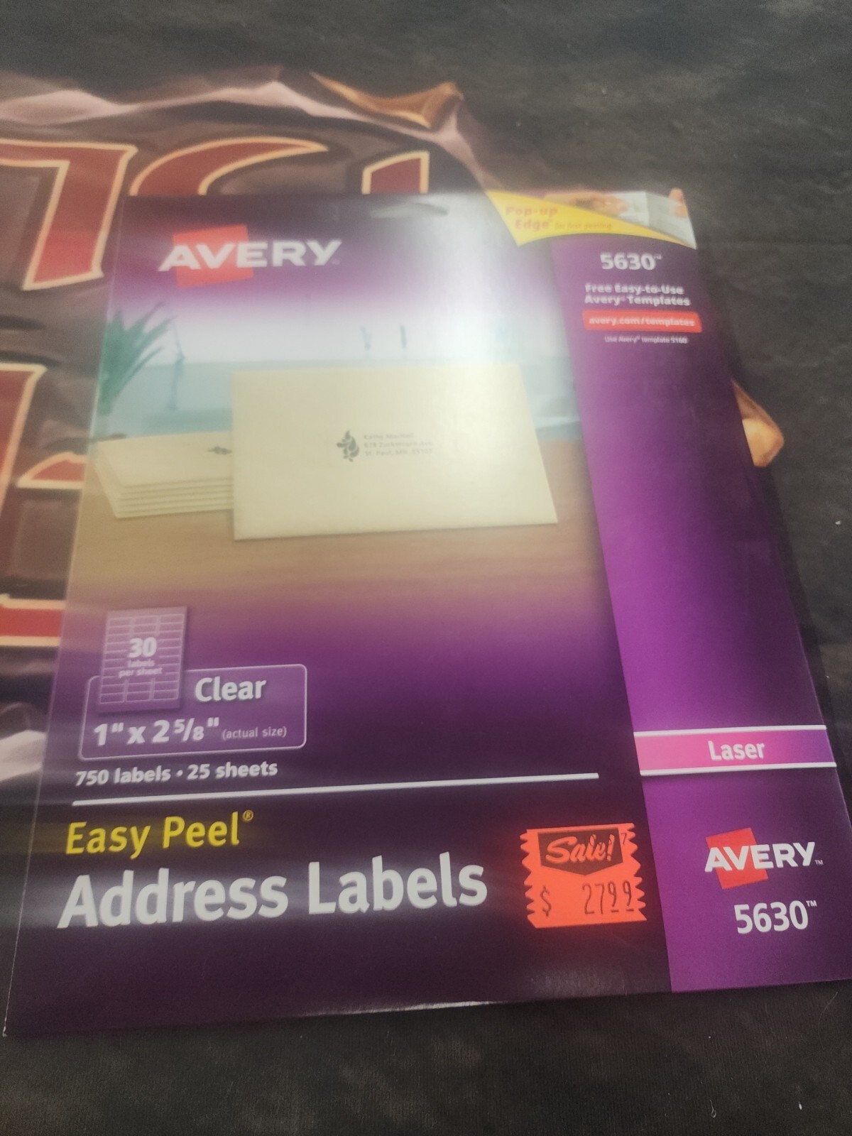 Avery 5630 Laser Address Labels 1-Inch X 2-5/8-Inch 750/Bx Matte Clear Avery 5630 Laser Address Labels 1-Inch X 2-5/8-Inch 750/Bx Matte Clear Visit the AVERY Store -16% $3483 List Price: $41.52 About this item Sold as 750/Box. Perfect for special occasions. Labels virtually disappear on colored and textured surfaces. With patented Easy Peel label sheets, just bend the sheet to expose the Pop-up Edge for fast peeling.